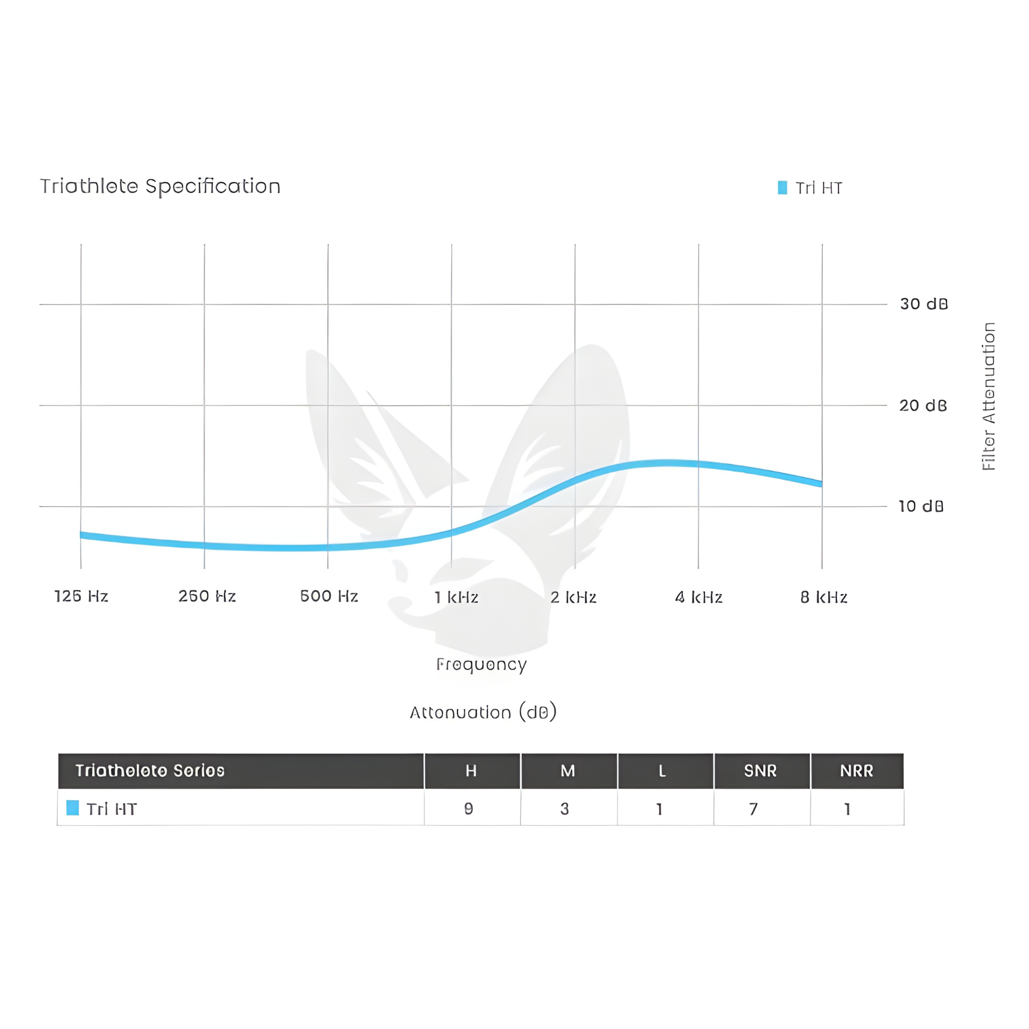 For users needing moderate attenuation, this chart shows the Tri HT’s performance across frequencies, ideal for environments with consistent noise.